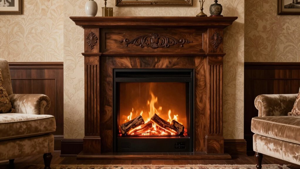 - They seamlessly complement traditional decor with ornate mantels and vintage finishes, enhancing classic interior aesthetics.