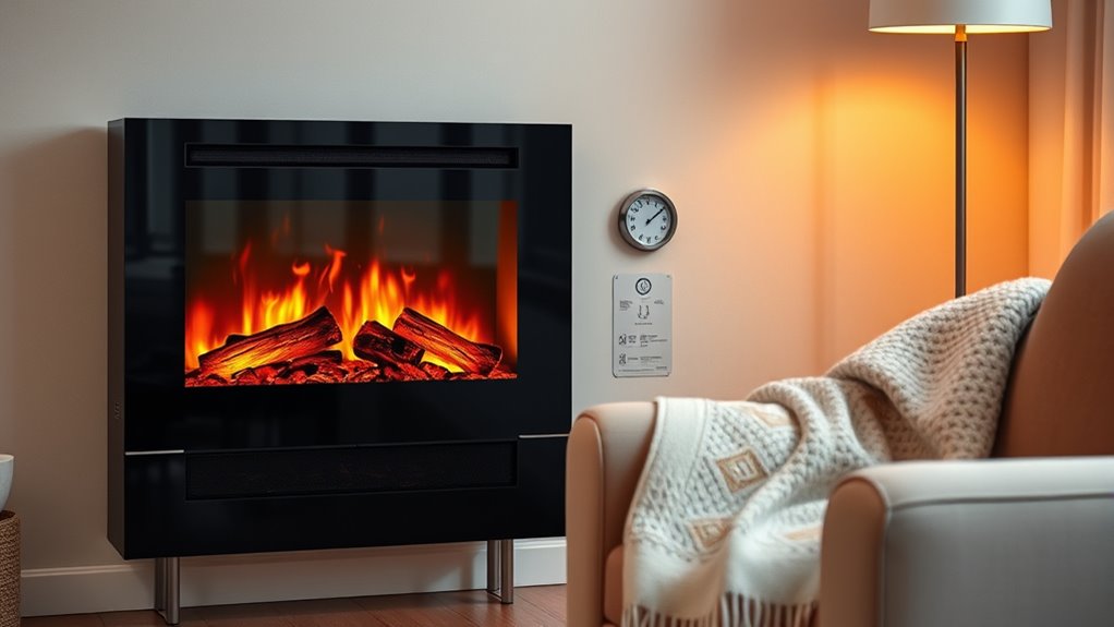 Surprisingly, electric fireplaces are most efficient in small to medium rooms where their heating efficiency shines. Larger spaces tend to leave you cold, as their warmth doesn’t spread as effectively. So, if you’re aiming for cozy comfort, pick a room size that matches the fireplace’s capacity. Don’t expect a massive room to heat up quickly—these units excel where you need targeted warmth, not whole-house heating.