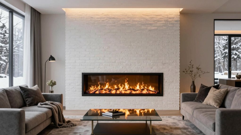 Beyond their efficiency, electric fireplaces markedly boost the aesthetic appeal of modern homes. They come in a variety of designs, from minimalist inserts to elaborate wall-mounted units, allowing you to tailor their look to your interior style. You can choose models that mimic the flickering glow of real flames with LED technology, creating a warm, inviting atmosphere without the mess or safety concerns of traditional fireplaces. This versatility enables you to incorporate a fireplace into virtually any space—whether it’s a sleek urban apartment or a cozy suburban living room—adding visual interest and a focal point that enhances your overall decor. Interestingly, the design flexibility of electric fireplaces makes them suitable for various interior themes, from contemporary to rustic. Incorporating safety features further enhances their appeal, as modern models often include cool-touch exteriors and automatic shut-off functions. An additional benefit is that electric fireplaces often feature low emissions, making them healthier choices for indoor air quality.