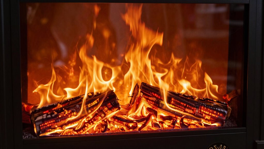 Flame-only mode is generally safe for children and pets since it doesn’t produce heat, reducing burn risks. Did you know that accidental injuries from fireplaces are a common concern? With flame-only mode, your kids and pets can enjoy the ambiance safely, as it minimizes danger while still providing the cozy visual effect. Always supervise, but this feature definitely helps enhance child safety and pet safety in your home.