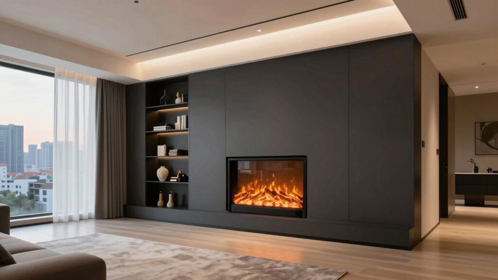 When designing or arranging an apartment, fireplace placement plays a essential role in both aesthetics and functionality. If you’re considering an electric fireplace, understanding how your apartment layout influences its placement is fundamental. Your space’s size, shape, and existing features can determine the best spot for your fireplace, guaranteeing it looks good and operates safely and efficiently. Fire safety should always be a priority. You want to keep the electric fireplace away from flammable materials like curtains or furniture, especially in tight or cluttered spaces. Proper placement reduces the risk of accidents and helps keep your home safe. Additionally, placement affects energy efficiency. Positioning your electric fireplace near exterior walls or in open areas can help distribute heat more evenly, reducing the need to crank up the thermostat and saving energy. Conversely, placing it in a corner or behind large furniture might block heat flow, making it less effective and increasing energy consumption. Considering fire safety guidelines is crucial when choosing the ideal location for your fireplace. Your apartment’s layout also impacts how well you can enjoy the fireplace’s ambiance. In small or open-concept spaces, placing the electric fireplace centrally can create a cozy focal point, making the room feel warmer and more inviting. If the layout includes multiple rooms, consider placing the fireplace where it can serve as a visual anchor without interfering with pathways or doorways. You’ll want an arrangement that maximizes both safety and comfort. If your apartment has limited wall space, you might opt for a corner installation or a sleek, wall-mounted design that doesn’t clutter the room. Be mindful of electrical outlets—placing the fireplace near an outlet can simplify installation and reduce the need for extension cords, which are safety hazards. Additionally, considering the apartment’s overall design can help ensure the fireplace complements your decor and layout seamlessly. Incorporating proper ventilation considerations can also impact placement, especially if you have specific building restrictions or safety regulations. Natural elements, such as incorporating indoor plants or natural materials, can enhance the ambiance created by your fireplace and make the space feel more inviting. Apartment layouts with open floor plans offer more flexibility in fireplace placement, while divided or compartmentalized spaces require strategic positioning to avoid blocking walkways or creating hazards. In larger rooms, multiple heat sources or fans can help distribute warmth more effectively, but the electric fireplace’s position remains key to energy efficiency. To achieve optimal results, consulting with a professional or reviewing building safety codes can provide valuable guidance. Remember, the goal is to find a spot that balances safety, comfort, and style. Proper placement enhances fire safety by reducing hazards, boosts energy efficiency by maximizing heat distribution, and ensures you get the most out of your investment. With thoughtful planning, your electric fireplace becomes not just a heating source but a stylish feature that complements your apartment’s layout perfectly.