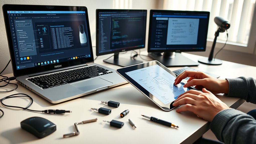 When technical issues arise during remote pair programming, addressing them quickly can keep your workflow smooth and minimize delays. Fast troubleshooting involves clear strategies for debugging network issues and resolving software conflicts. First, check your internet connection and restart your router if needed to fix connectivity problems. Second, verify that all software and tools are updated to avoid conflicts that can disrupt collaboration. Third, utilize built-in diagnostics or logs to identify and resolve issues swiftly. Keeping communication open with your partner helps you troubleshoot efficiently. Additionally, understanding the Kia Tuning options available can help identify hardware-related issues if performance problems occur. By staying prepared with these quick fixes, you minimize downtime and maintain productivity during your remote pairing sessions. Remember, timely problem-solving keeps the focus on coding, not technical hurdles.