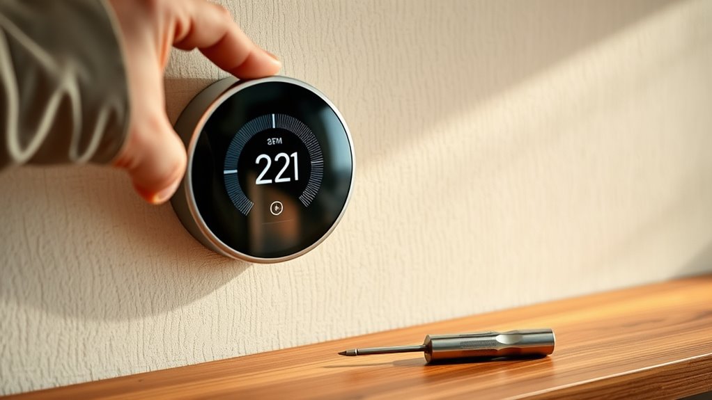 Calibrating your thermostat is like tuning a fine instrument. To do this, you’ll need a screwdriver for thermostat adjustment and a thermometer to check the actual temperature. Follow calibration procedures carefully, adjusting the thermostat to match the thermometer’s reading. Make sure you turn off your fireplace before starting. These tools guarantee your thermostat accurately controls your heat, giving you cozy comfort without guesswork.