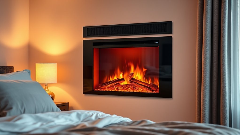 Installing an electric fireplace in your bedroom can create cozy warmth, but remember, like a delicate flame, it needs careful attention. I once knew someone who ignored overheating warnings, only to find their room uncomfortably hot—and the unit damaged. Think of your electric fireplace as a trusted friend: it offers comfort but requires respect. By monitoring its use, you keep the warmth without risking a costly mishap, ensuring your space stays inviting and safe.