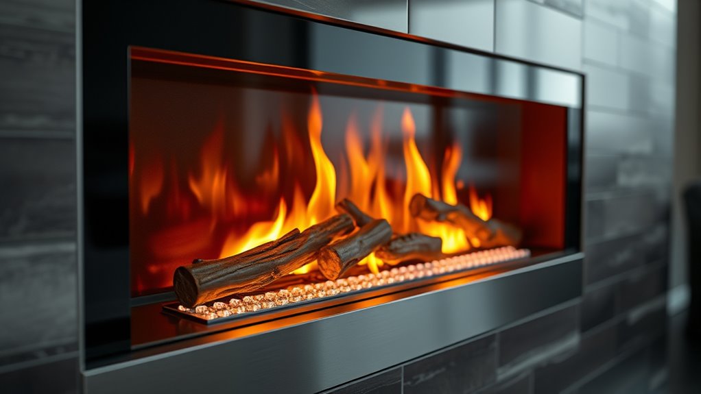It’s normal for your electric fireplace to click occasionally during operation, especially as it adjusts to temperature changes or cycles through heating modes. However, if it clicks constantly, it could indicate issues like improper fireplace installation or power supply problems. You should check the power connection and make certain all components are securely installed. If the noise persists, consider consulting the manufacturer or a professional to prevent potential damage.