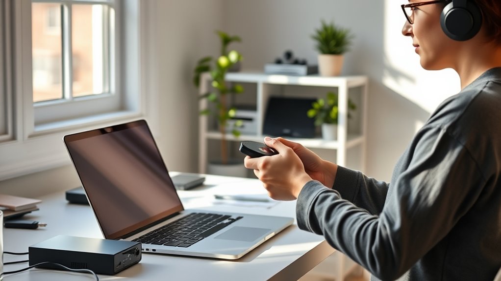 You can determine if your remote is compatible with your device by checking the remote’s compatibility list, usually found in the user manual or manufacturer’s website. Confirm your remote supports device pairing with your specific model. When pairing, follow instructions carefully—if it connects successfully without issues, it’s compatible. If not, try different pairing methods or consider a universal remote that offers broader compatibility for your device.