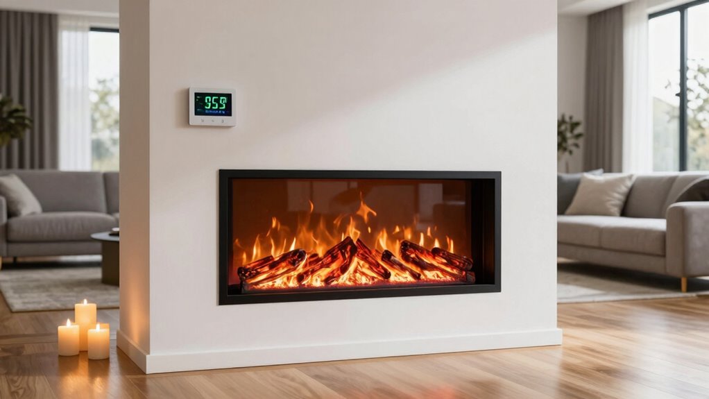 I find that thermostats in electric fireplaces are generally quite accurate, often within a few degrees of the set temperature. They respond quickly to changes, helping maintain a comfortable room climate. However, accuracy can vary depending on the model and room conditions. I recommend checking reviews and product specs to guarantee the thermostat meets your expectations for precision, especially if you’re aiming for consistent warmth.