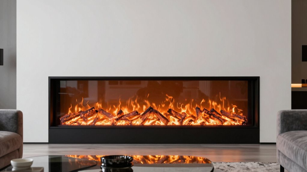 Flame realism and effects are essential for creating an authentic fireplace experience, especially in high output recessed electric models. High-quality LED or OLED lights mimic the flickering and movement of real flames, making the display convincing even from a distance. Multiple flame color options, along with adjustable flame speed and brightness, let you customize the fire to suit your mood and décor. Incorporating ember beds, logs, or crystals with customizable colors further enhances visual authenticity. Dynamic effects like dancing or pulsating flames add to the lifelike feel, creating a more immersive experience. Advanced lighting technology and detailed media ensure that the fire illusion remains convincing, making your electric fireplace a stunning focal point that truly resembles a real fire.