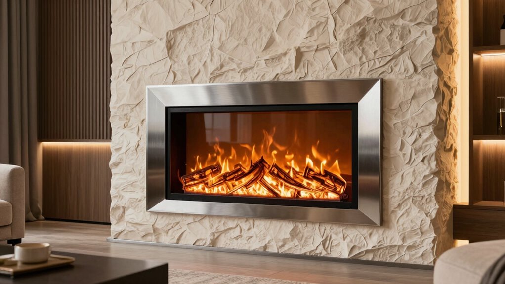 High-end electric fireplace models are quite energy-efficient, often using LED technology and adjustable heat settings to minimize power consumption. I’ve found that they convert nearly all the electricity into heat, making them a cost-effective way to add warmth and ambiance. Plus, features like thermostats help me control energy use, ensuring I don’t waste electricity. Overall, these models are designed to provide cozy comfort without skyrocketing energy bills.