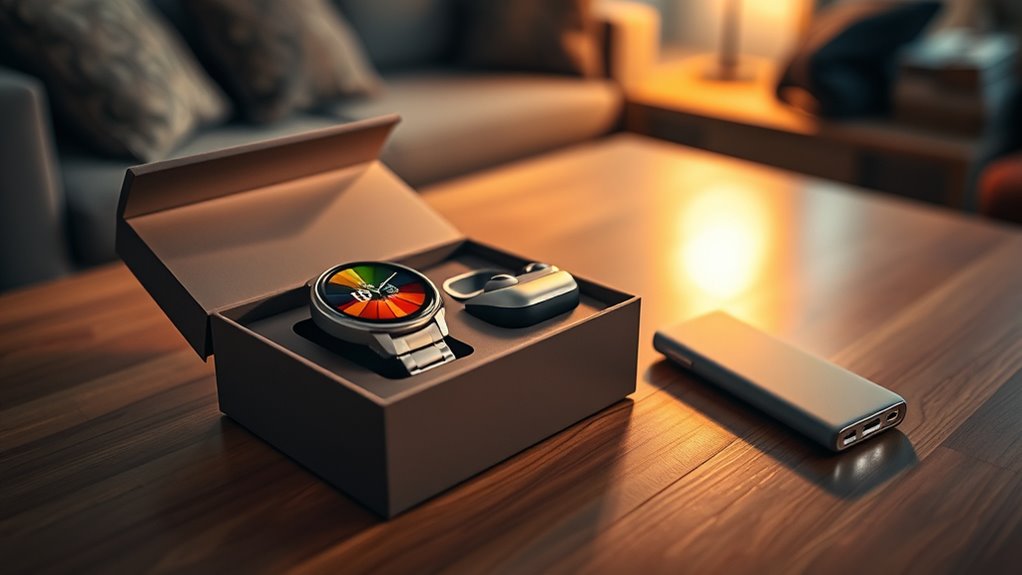 A gift’s presentation can considerably boost its impact, making even a high-quality tech gadget feel more special. Well-designed packaging, like custom boxes or decorative wrapping, instantly elevates the gift experience and shows thoughtfulness. Clear, professional labeling and branding on the packaging reflect attention to detail and quality, enhancing perceived value. Adding a personalized note or gift card brings sentimental meaning, making the gift feel more personal. Durable, attractive packaging materials not only protect the gadget during transit but also create a memorable unboxing moment. When choosing tech gifts for dad, investing in high-quality presentation isn’t just about aesthetics; it shows you care and makes the gift feel more thoughtful and impressive from the moment he opens it.