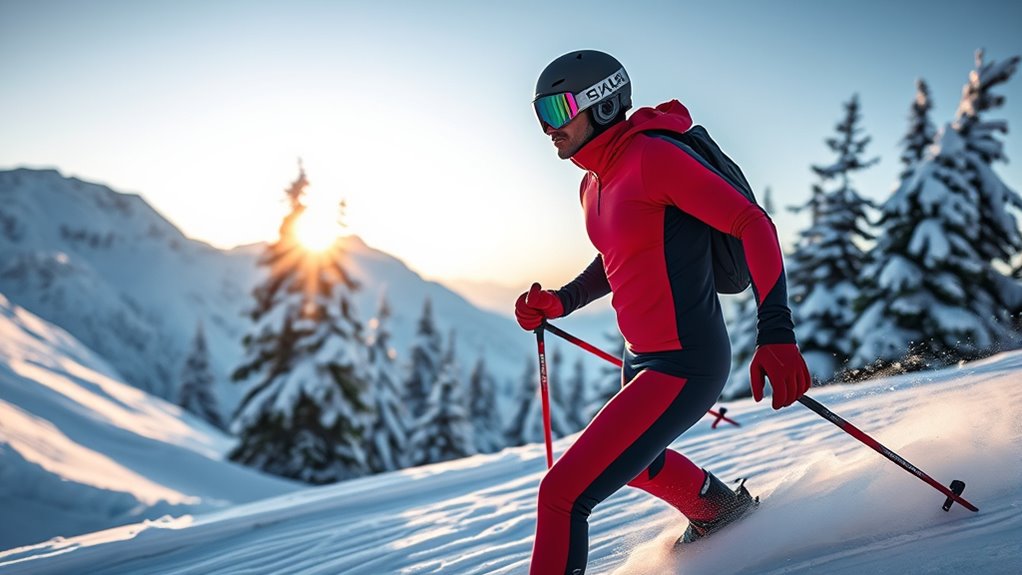Staying warm on the slopes is essential, and choosing the right thermal underwear makes all the difference. Did you know that properly layered thermal gear can improve your body heat retention by up to 30%? Investing in quality base layers guarantees comfort, warmth, and confidence during your ski adventures. So, pick the set that fits your needs best, and enjoy hitting the mountains with warmth and ease!